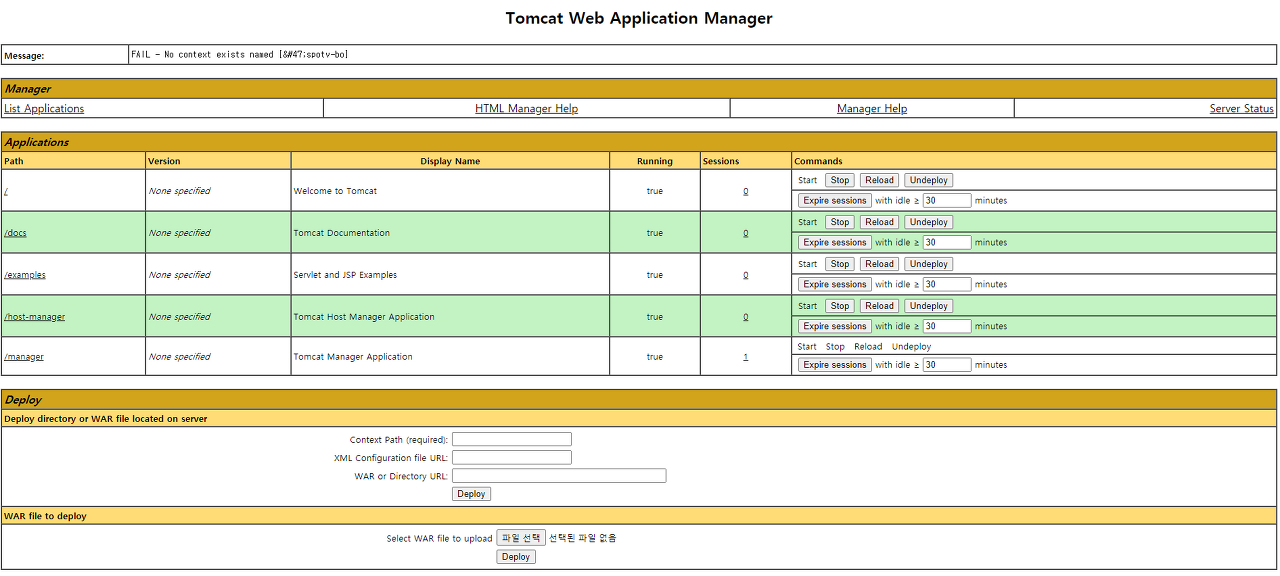 http://호스트IP/manager 입력 시 아래와 같은 화면 출력